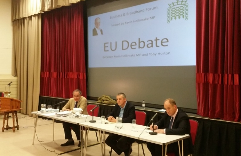 Another EU debate arranged by Kevin Hollinrake MP took place last Friday in Easingwold. Once again residents got the chance to listen to arguments for and against leaving the EU and ask questions of the speakers. The MP for Thirsk and Malton spoke for the campaign to Remain and Toby Horton, the UKIP candidate in the General Election, argued to Leave. It was chaired by the Mayor of Easingwold, Councillor Peter Nottage. This was one of several debates that have been held around the constituency in the last month. Mr Hollinrake organised the events to give people the chance to hear more about the issues and to get answers to their concerns over Brexit. In his opening speech Mr. Horton expressed his gratitude to the MP for arranging the debates: during the event various members of the audience echoed this saying how much they appreciated the chance to take part and make their own points. Mr. Hollinrake thanked everyone involved in all the debates which he has greatly enjoyed, “It has been great fun and very informative debating with Toby Horton. I am so very pleased he joined me in these events across the constituency. My thanks also to all the people who have chaired the local events. I have been delighted by the participation of the audiences: they have all been lively discussions and have covered a huge range of issues including immigration, trade, farming and education. I hope they have been of use to people before the referendum next week.” As well as those he has organised, the MP has also taken part in other debates in schools and in the community and had various local meetings with farmers and other constituents to talk about the forthcoming vote. He has also visited all the market towns in the constituency to meet residents to discuss the pros and cons of the country’s membership of the EU.